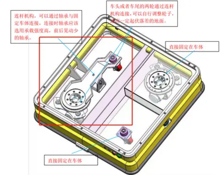 对于AGV车来说,设计减震悬挂的情况比较多,我们重点讨论带减震的情况进行分析。